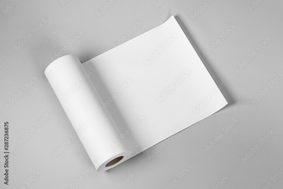 Blank white paper rolls isolated on gray background. Mockup paper for magazines, catalogs or newspapers isolated on gray backdrop, Printing house theme or wrapping paper for presents