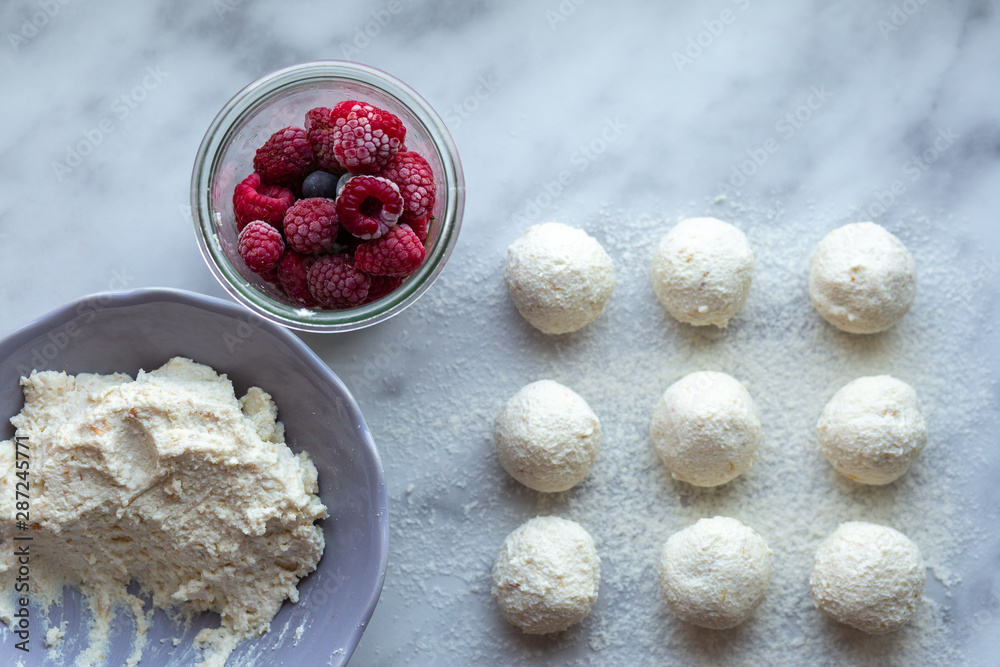 Lazy curd dumplings with raspberries