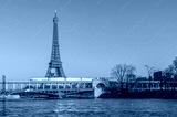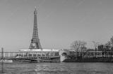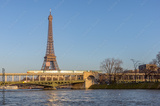 Sunset over Metro with tags crossing Bir-hakeim bridge with Vedette de Paris and Eiffel Tower in background - Paris, France