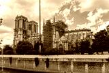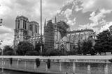 Paris, France: Notre Dame de Paris. Reinforcement work in progress after the fire. Wood Shoring now prevent the flying buttresses from collapsing.