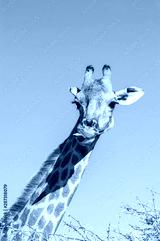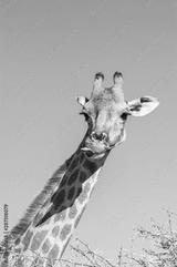 An extreme closeup of an Angolan Giraffe - Giraffa giraffa angolensis- head. Etosha National Park, Namibia.