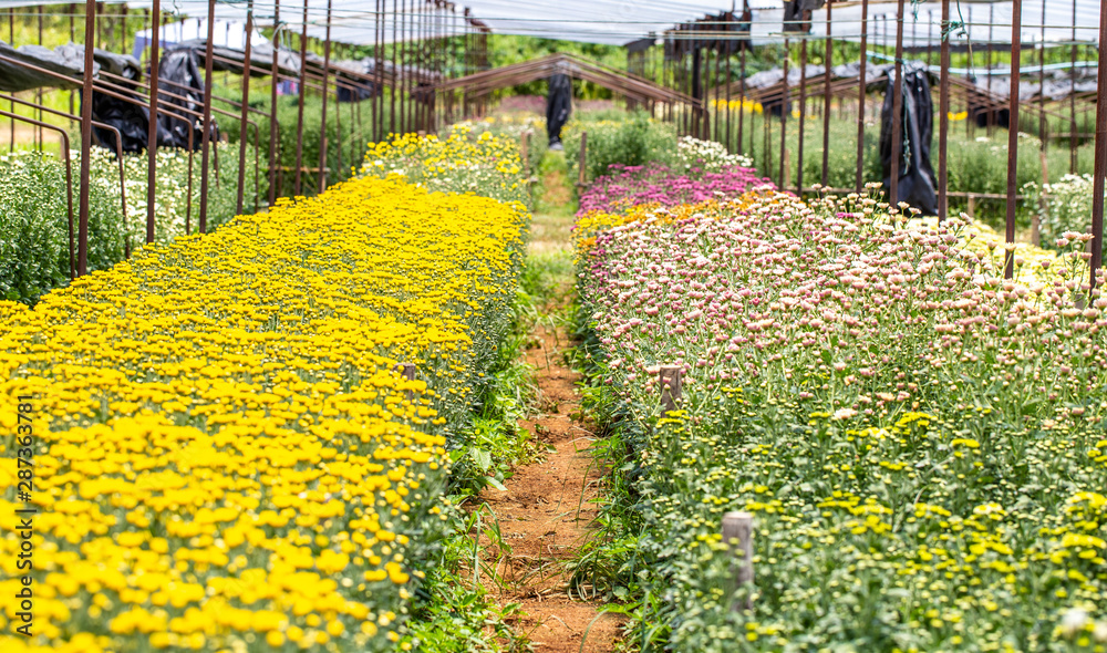 Beautiful colorful chrysanthemum in farmer garden.