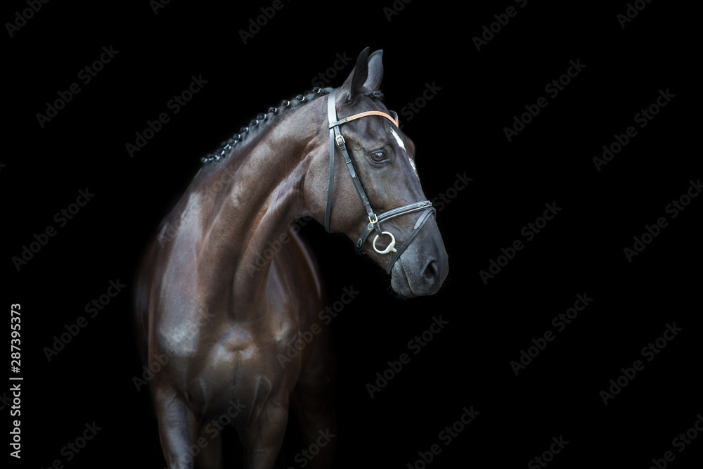 Black horse portrait on black background