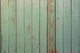 Wall texture of wooden boards with peeling green paint