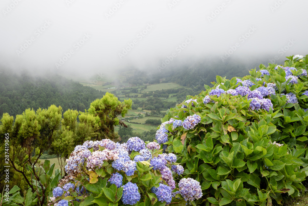 View of Azorean nature from Lomba do Vasco viewpoint in Sao Miguel island, Azores, Portugal