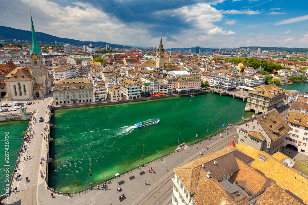 Zurich. Panoramic aerial view of the city on a sunny day.