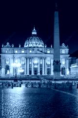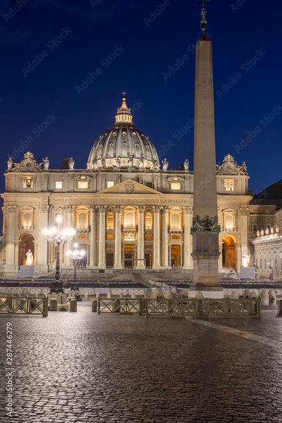 St. Peter's Square and St. Peter's Basilica in Vatican City at night. Vertically.