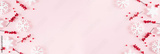 Christmas modern composition. Xmas decorations, red berries, snowflakes on pastel pink background. Christmas, New Year, winter concept. Flat lay, top view, copy space, banner