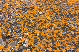 Rock covered in red lichen, Maria Island, Tasmania, Australia