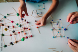 teacher and child making geometric shapes from sticks and play dough