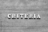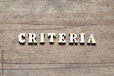 Letter block in word criteria on wood background