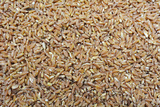 Spelt seeds close up background. Background texture of grains of Emmer (Triticum) wheat. Organic healthy vegetarian food.