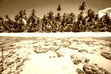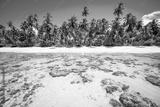 Bright scenic view of a remote Brazilian beach with an exposed coral reef under clear tropical waters in Bahia, Brazil