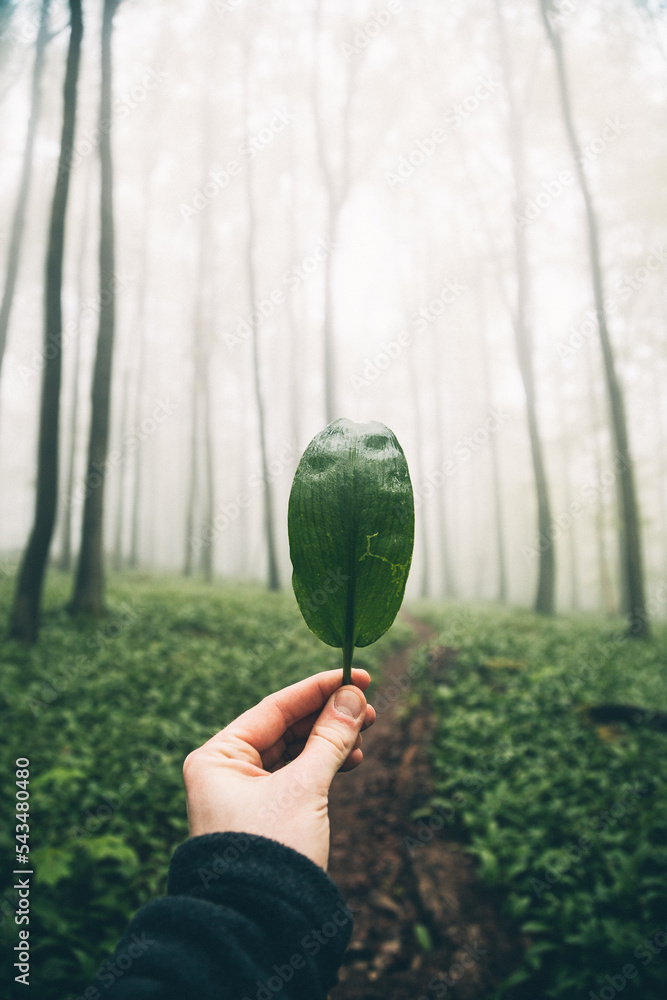 Sunshine young teen girl with red curly hair is wearing green knitted sweater and hat in autumn park.