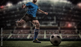 Football player with ball on field of stadium