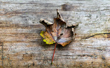 autumn leaves on wooden background