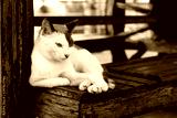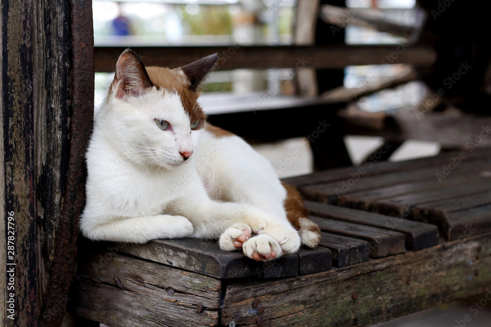 white and brown cat Lying Down on bench