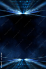 Dark background with lines and spotlights, neon light, night view. Abstract blue background.