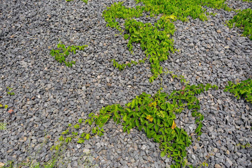 Life in the rocks. Wild small rocks and green vine plant living together.