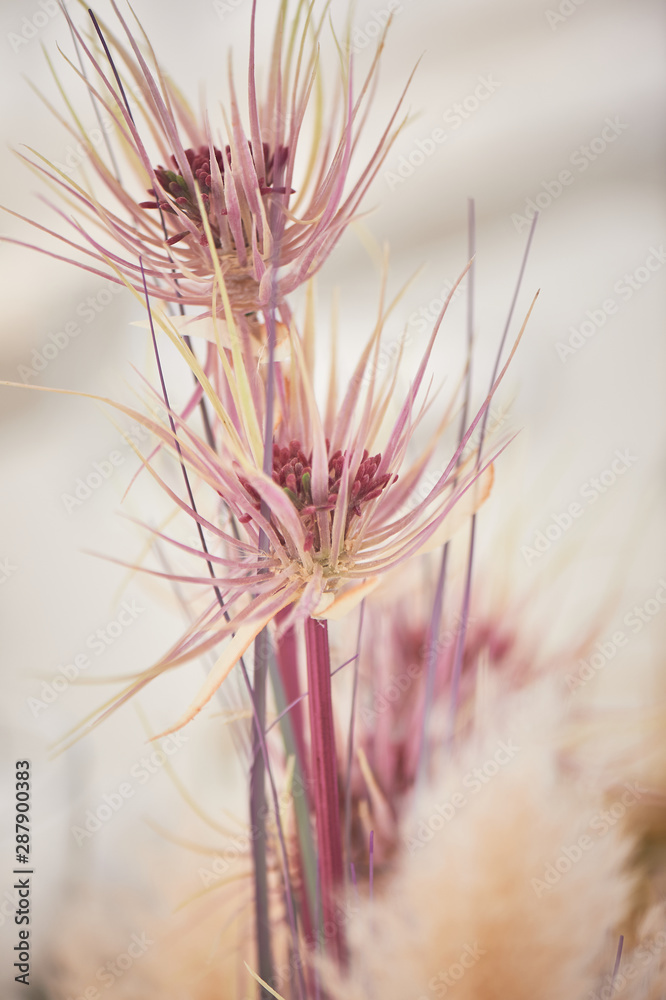 Wedding decoration in boho style. Light colors, in the tent.