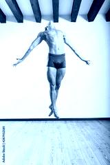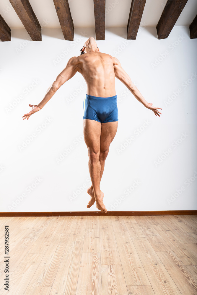 Beautiful male ballett dancer performing indoor