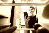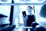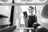 healthy eating and diet concept - woman at fridge with smartphone making list of necessary food at home kitchen