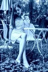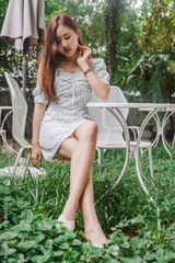 Asian woman relaxing at nature garden .