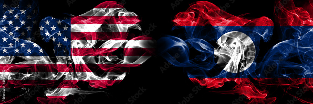 United States of America, USA vs Laos background abstract concept peace smokes flags.