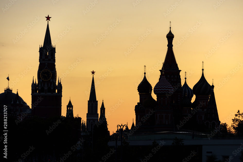Moscow Kremlin and St Basil`s Cathedral at night, Russia