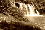 Background Beautiful waterfall in mountains. Traveling along mountains and rain forest. Chet Khot Nature and Ecotourism Center, Saraburi, Asia, Thailand
