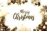 Christmas and New Year holiday background. Xmas greeting card. Christmas gifts on white background top view. Flat lay