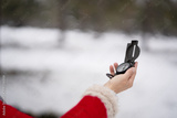 Santa Claus is preparing for a Christmas trip. Santa is looking the North pole with his Compass. Christmas time.