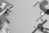 back to school tools of study in classroom, student learning with education kids concept, play fun and toy, top view flat lay background, children and knowledge, workspace home office