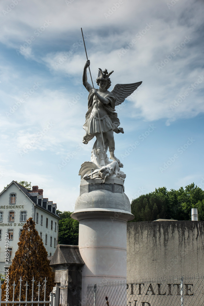 Archangel Michael fighting a dragon set on the square in the sanctuary of Lourdes