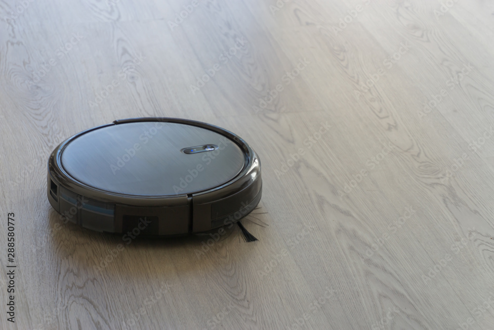 Robotic vacuum cleaner on laminate wood floor smart cleaning technology