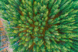 Looking down at pine tree tops in Australia - aerial landscape