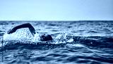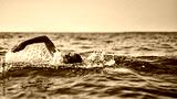 Swimmer training on the open sea / ocean.