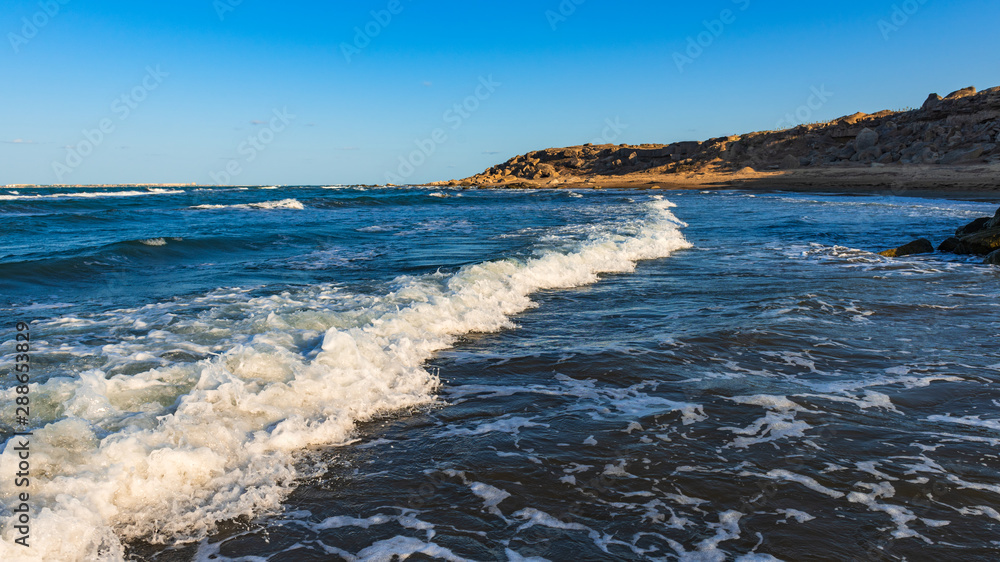 Coastal sea line with beautiful waves on water