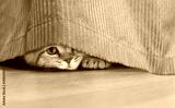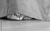 funny cat hidden under curtain
