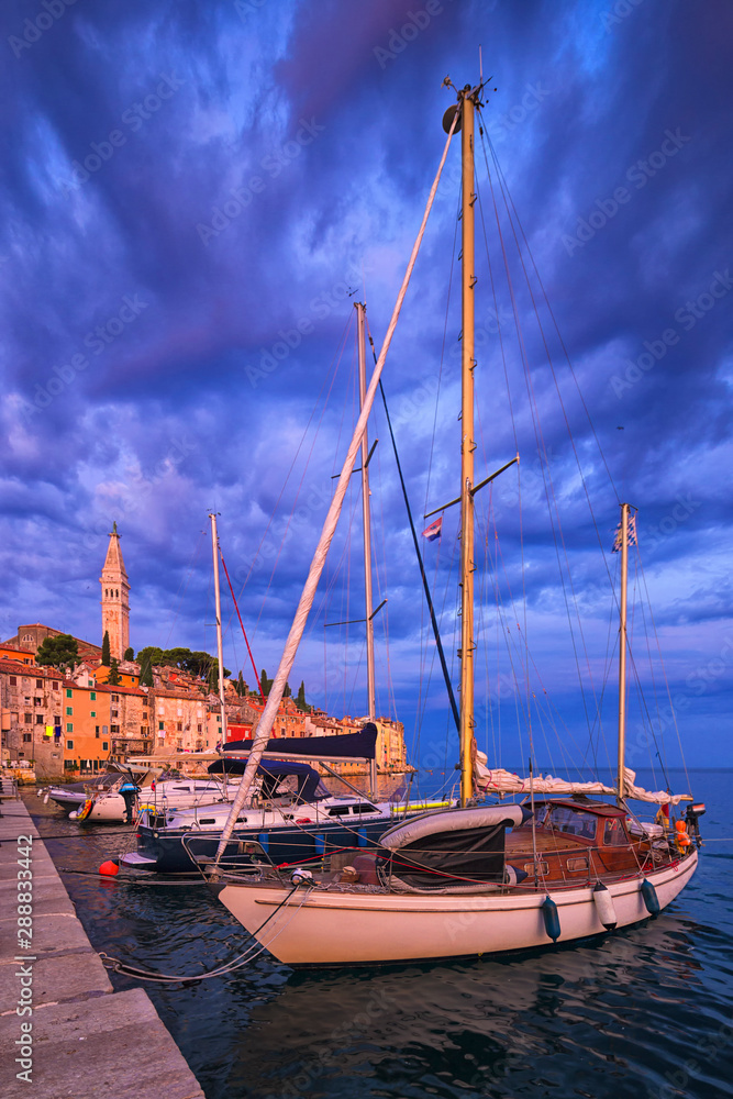 seaside view of old town of Rovinj, Croatia.