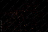 Burning red hot sparks fly from large fire in the night sky. Beautiful abstract background on the theme of fire, light and life.