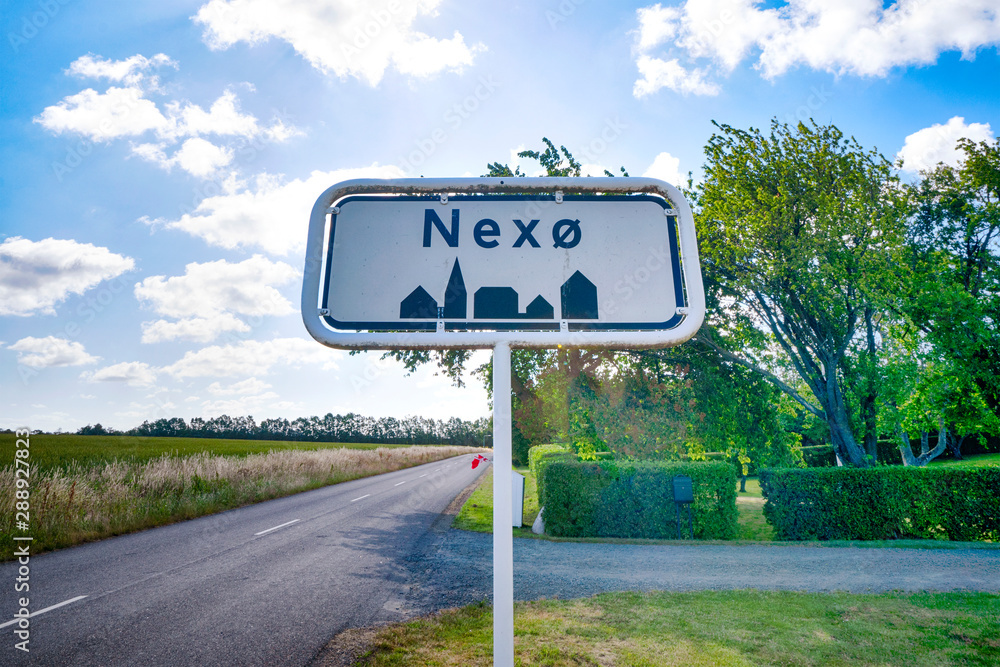 City sign of Nexø city on the danish island