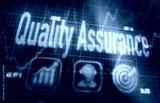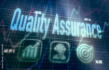 Quality Assurance concept on a blue dot matrix computer display.