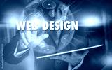 A hand selecting a Web Design business concept on a futuristic computer display.