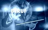 A hand selecting a Job "Beruf" business concept in German on a futuristic computer display.