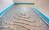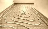 Fußbodenheizung mit Heizschlangen in einem Neubau