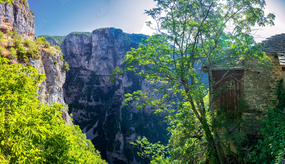 view of Vikos Gorge, a gorge in the Pindus Mountains of northern Greece, lying on the southern slopes of Mount Tymfi, one of the deepest gorges in the world. Zagori region, Greece.