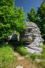 Stone forest, natural rock formation, created by multiple layers of stone, located near Monodendri village in Zagori region, Epirus, Northern Greece