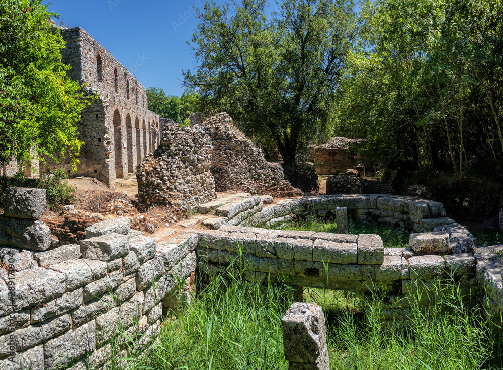 Impressions of the Ancient town Butrint (Buthrotum) - touristic attraction in Albania. Summertime traveling. Amazing original old town with fantastic stone architecture.
