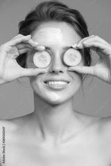 Portrait of beautiful woman with blue cream mask on her face.
